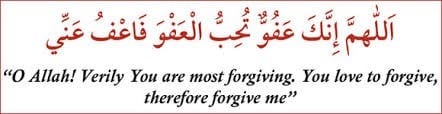 The Prophet (saw) is reported to have said ‘You should supplicate: ‘Allahumma innaka ‘afuwwun, tuhibbul-‘afwa, fa’fu ‘anni (O Allah, You are Most Forgiving, and You love forgiveness; so forgive me).’
